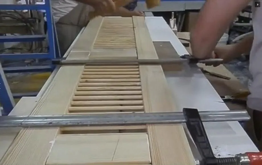 - Вставьте ламели в пазы и зафиксируйте перемычки (верхнюю и нижнюю) шкантами.