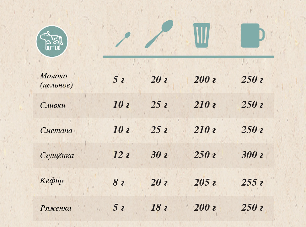 | 100 мл молока – это сколько ложек | 6 | 2 |