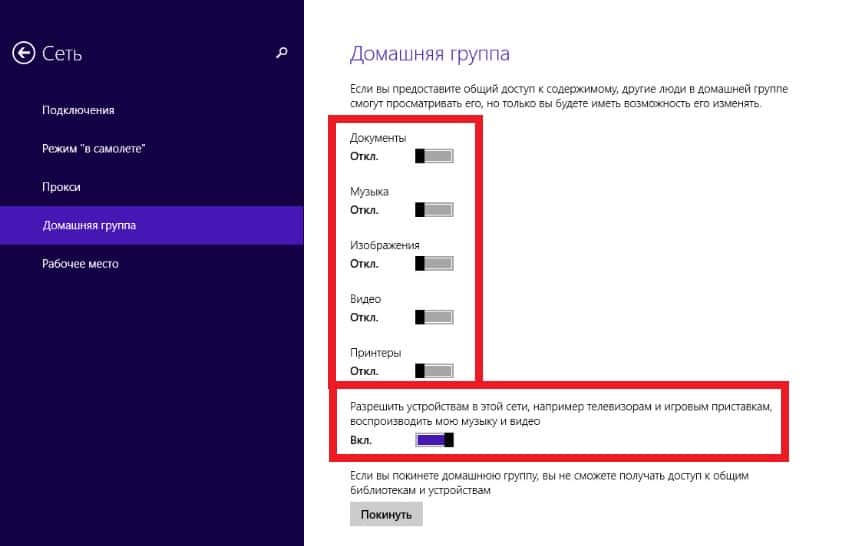 После подключения ТВ к сети необходимо зайти в настройки ноутбука, перейти в пункт «Сеть» и открыть общий доступ к данным с ноутбука всем устройствам, находящимся в домашней сети.