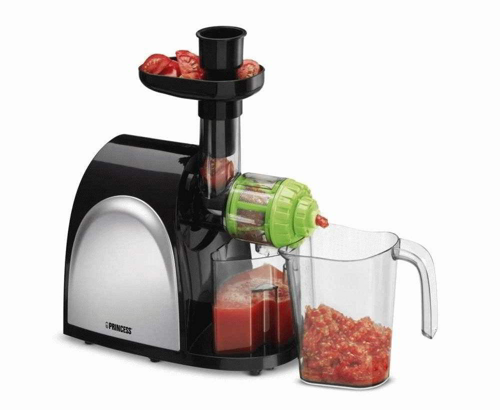 Шнековая горизонтальная или вертикальная соковыжималка относится к сырью более бережно. В них продукты перемалываются специальным спиралевидным шнеком и пропускается через особое сито, где и происходит отделение жмыха от сока. Такой способ обработки не допускает увеличения температуры и никак не отражается на вкусовых качествах напитка. Этой соковыжималкой можно перерабатывать все без исключения продукты, она подойдет и для ягод, для винограда с косточками. Есть, разумеется, недостатки и у таких моделей, например, на получение сока уходит много времени, сок из очень мягких фруктов содержит много мякоти, к тому же такие варианты стоят довольно дорого.