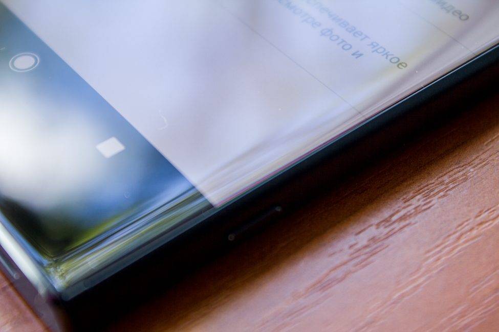 Во-вторых, в областях, где стекло загнуто, под углом можно заметить эффект “радуги”.