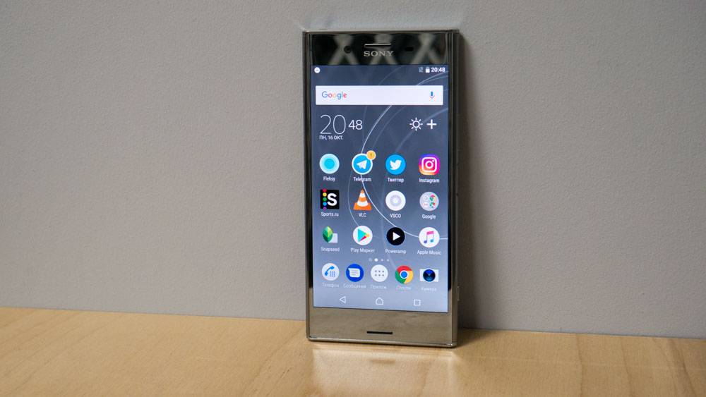Первое что бросается в глаза — довольно большие рамки вокруг дисплея. С одной стороны — это может показаться странным и неуместным во флагмане 2017 года, с другой же — Sony не плывут по течению и не стремятся быть как все, за что им огромный плюс. Смартфон по размерам очень похож на любой iPhone версии Plus.