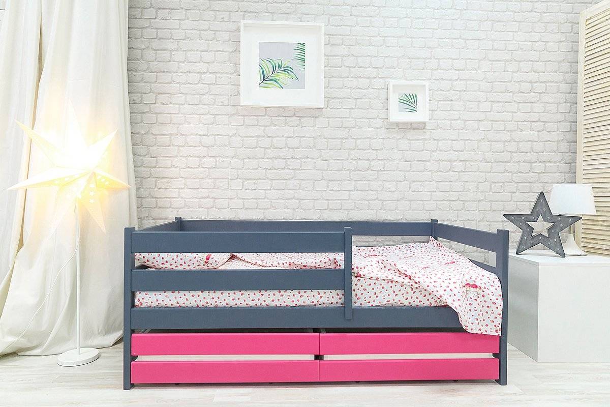 - Чтобы ребенок хорошо высыпался и не имел проблем с осанкой в дальнейшем, выбирают детские кровати от 2-3 лет с полутвердым наполнителем (или матрасом), которая будет выполнять ортопедические функции;