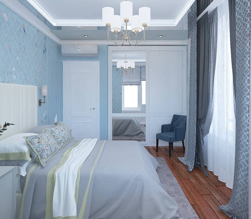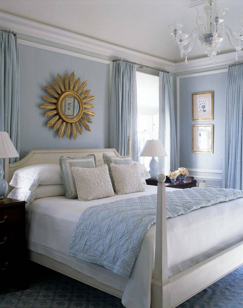Голубой цвет — универсальный. Его можно применить практически в любом стиле. Выбрав основной цвет спальни и подобрав дополнительные, следует определиться со стилем дизайна. Каждый из них имеет свои законы оформления.