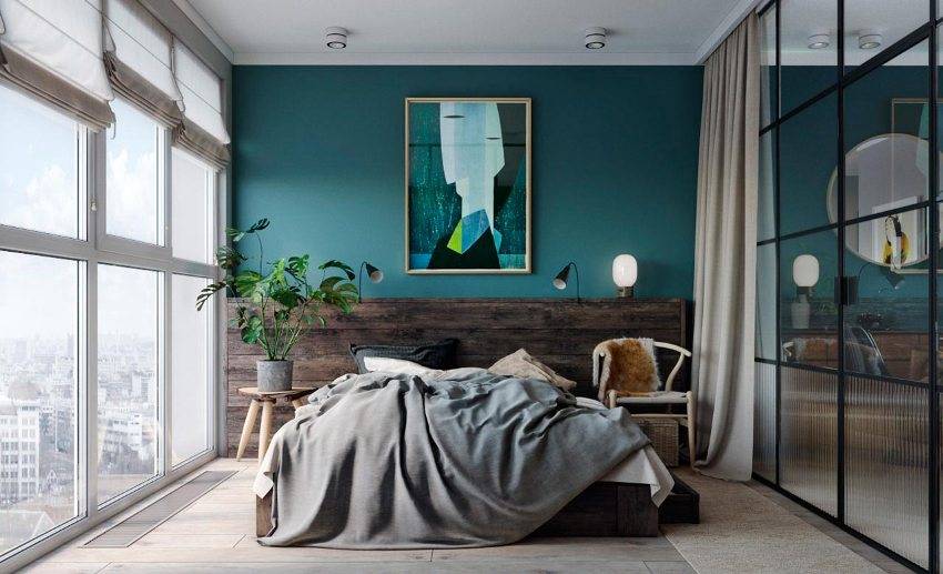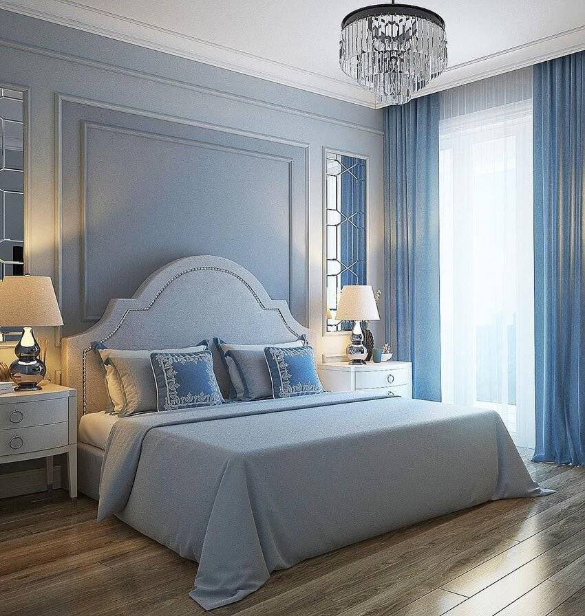 Со спальней в синем цвете можно добиться успокаивающей и умиротворенной атмосферы, которая идеальна для здорового сна. Занавески должны подбираться таких оттенков, которые не будут напрягать глаза.