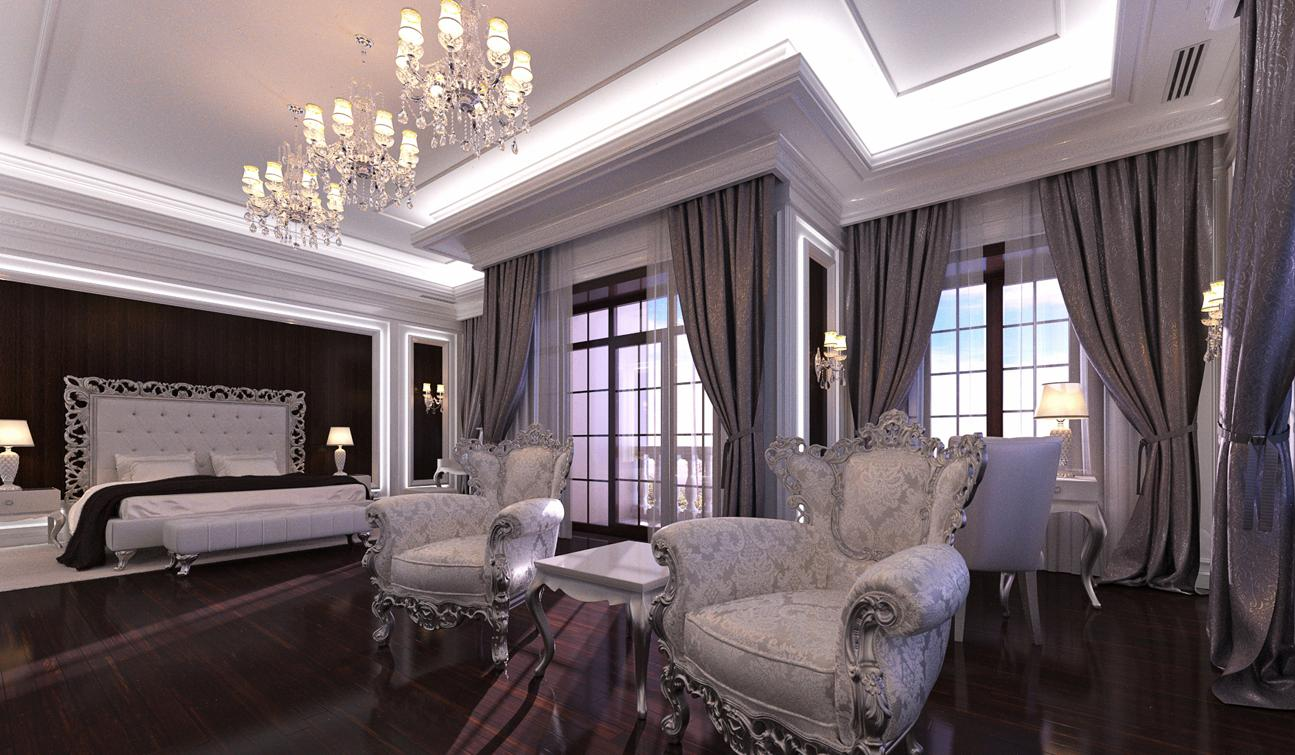 Разумеется, размеры спальни и планировка квартиры должны соответствовать представлениям о богатом интерьере, стиль прекрасно смотрится в большой спальной комнате, от 20 квадратов и больше.