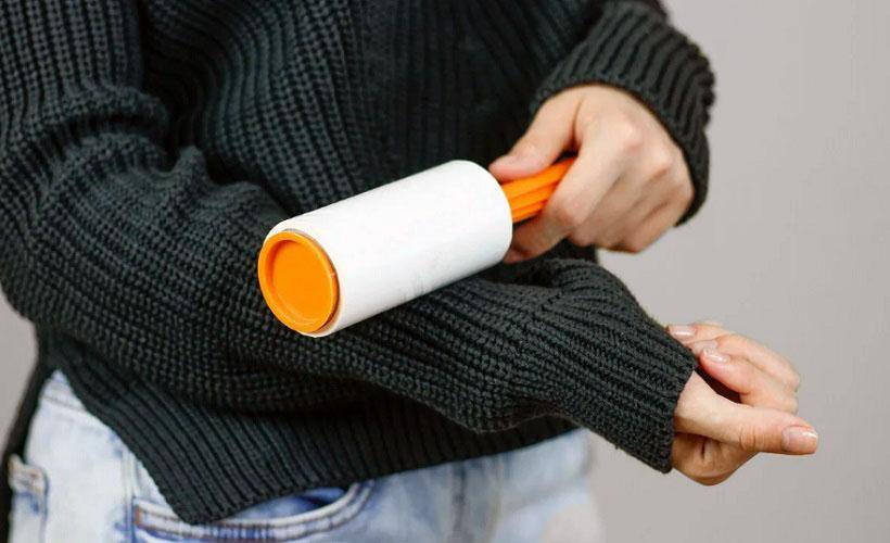 Один из простейших способов убрать шерсть с одежды до стирки – использовать липкий ролик. Есть одноразовые и многоразовые приспособления. У первых несколько липких слоев, которые по мере загрязнения отрывают. Многоразовый валик промывают под проточной водой, постепенно свои свойства он теряет.