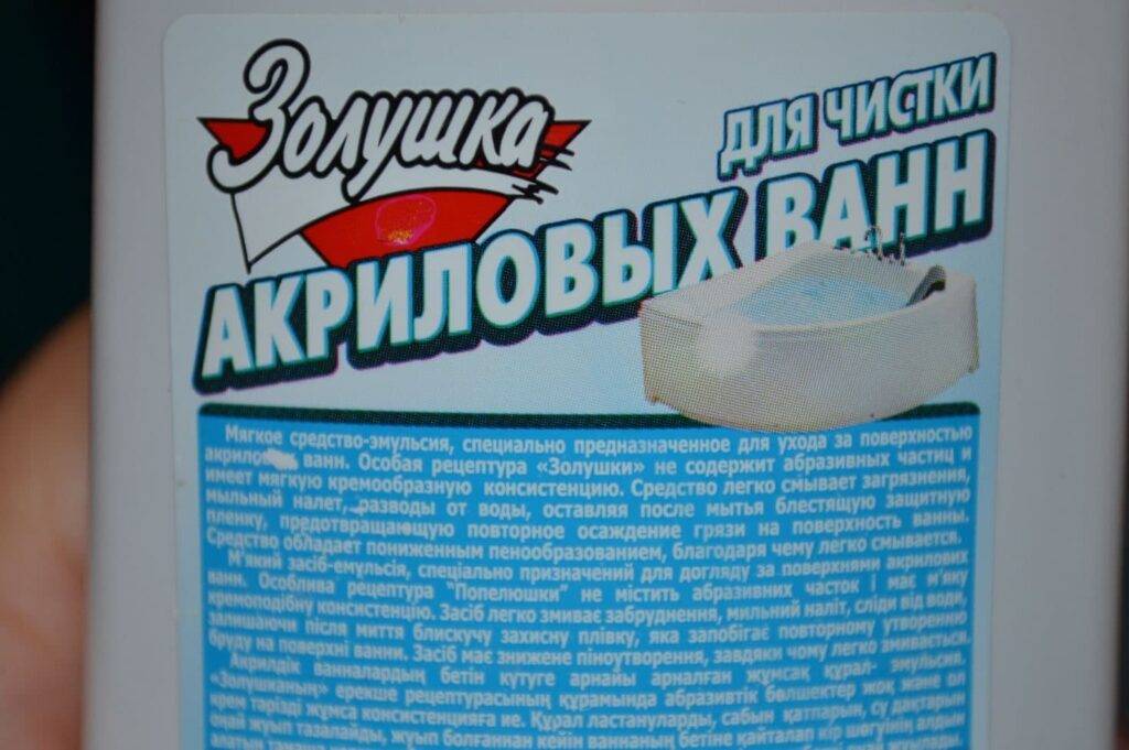 - Перед использованием моющего средства нужно внимательно изучить его состав. В нем не должно быть компонентов, способных разрушить акрил.
