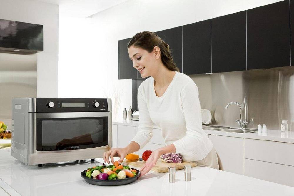 Сегодня мощные модели фирм Bosh, Sumsung и другие ряды микроволновок могут полностью заменять духовые шкафы. Как правило, такие экземпляры наделены функцией конфекции. Это означает возможность равномерно распределить нагрев, тем самым добиваясь достойных блюд. Встроенный вентилятор с легкостью справляется с поставленной задачей.