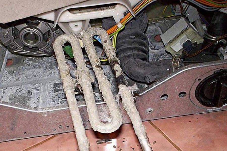 Поломка трубчатого электронагревателя – наиболее распространенная причина, когда машинка стирает холодной водой. В хороших условиях ТЭН работает 5 лет и более. Но наличие жесткой воды, некачественных моющих средств, не соблюдений эксплуатационных условий приводят к возникновению накипи. Результатом служит перегрев и перегорание ТЭНа.