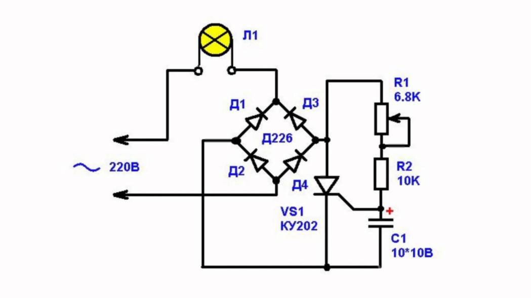 Схема включает четыре диода, которые подключаются разнонаправленно. Благодаря этому мост приобретает возможность трансформировать сетевой ток в 220 V в пульсирующий.