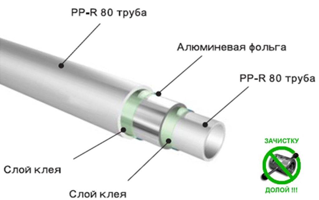 Первый и второй слои выполнены из полипропилена, а последний — из алюминия или стекловолокна. Качественная конструкция обладает гладкой поверхностью, на которой нет дефектов.