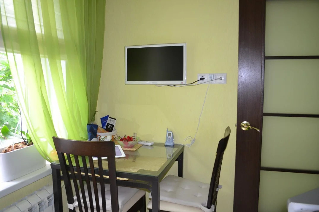 Крепление к стене возможно в больших помещениях, типа столовой. Там уже стоит учитывать дальность от обеденного стола, высоту стульев, диванов. И соблюдать общие правила размещения экрана по уровню глаз смотрящего.