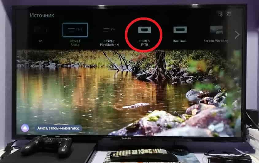 - с помощью пульта телевизора открыть на устройстве меню, определяющее устройства для передачи сигнала;
