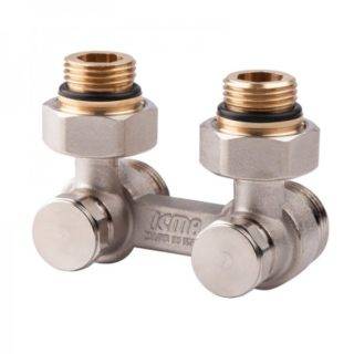 Последний из вариантов отличается сложностью исполнения. Он является частью гарнитуры. Предназначается подобная конструкция для двухтрубной централизованной системы отопления. Подключается с одной стороны к первой трубе, а с другой – ко второй. Гарнитура стоит дороже аналогов, но и возможности у нее намного больше. Так, можно установить термоклапан на трубы, которые выходят из пола. При этом не требуется сложная разводка.
