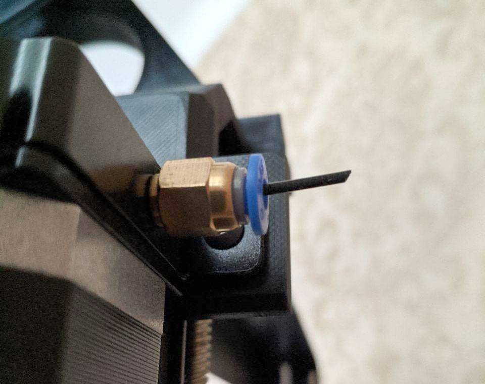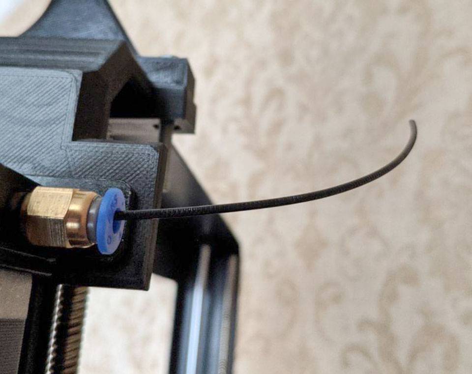 Для настройки можно вынуть трубку из хотенда, но если вы боитесь его трогать, то нужно вынуть пластик из трубки до колеса податчика и снять трубку из крепежа. Пруток пластика должен торчать.