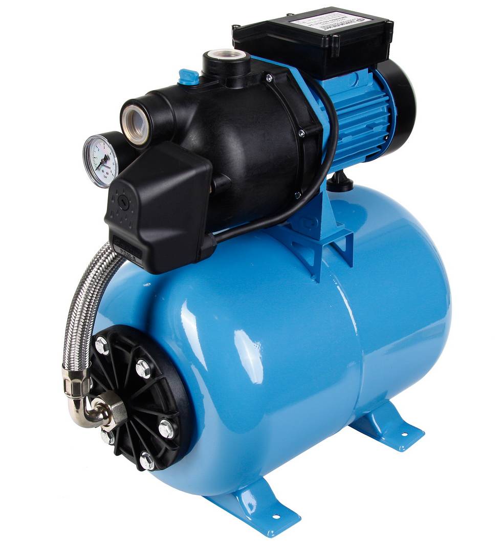 Компактная насосная станция подойдет для дома или дачи. У нее относительно небольшой напор в 28 м, чего хватает примерно на три точки водоразбора. Однако пользователи отмечают, что при должной настройке можно отрегулировать станцую до 3,4 бар, что даст примерно 34 м напора. Здесь стоит небольшой по мощности двигатель в 500 Вт и гидроаккумулятор объемом 18 л.