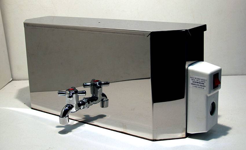Рукомойник с подогревом воды, сделанный из нержавеющей стали или оцинкованный, более надежный, эргономичный и практичный в плане ухода за изделием. Для такой модели не страшны любые механические повреждения. Он будет служить долго, сохранив отличный внешний вид.