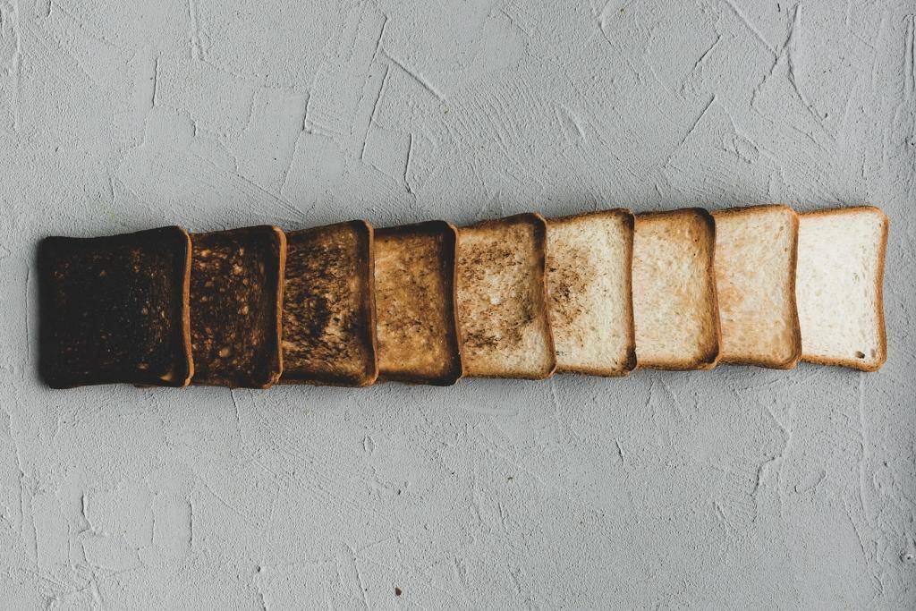 Температура, установленная в приборе, влияет на степень прожарки. В некоторых моделях может быть индикатор или переключатель режимов — это упрощает готовку. Если ломтики тонкие и пористые, например, чиабатта, дрожжевой хлеб или с большим количеством разрыхлителя, выбирают щадящий режим с температурой поменьше. Если кусище потолще и плотный по структуре — режим средний и выше.