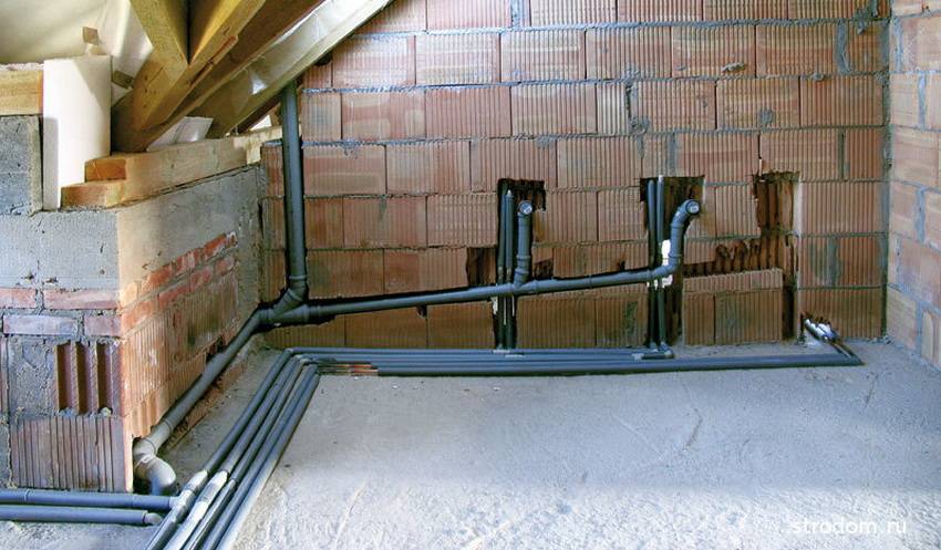 Для строительства внутренней канализации рекомендуется использовать пластиковые трубы с диаметром 110 и 50 мм.