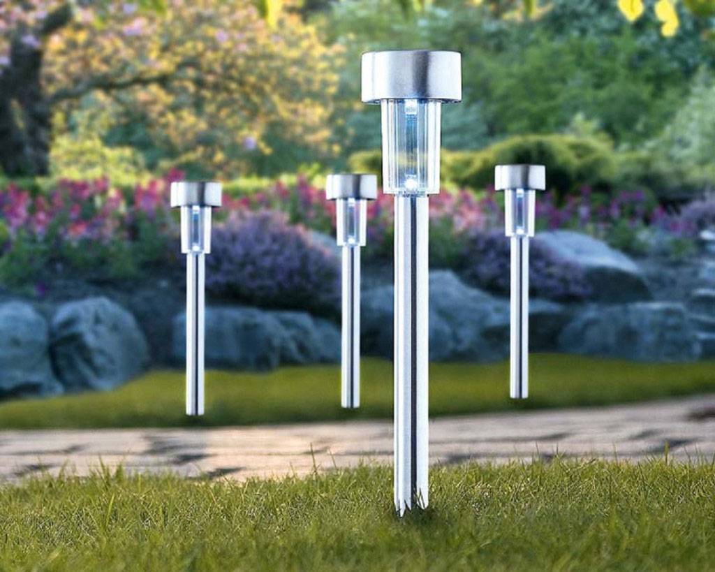 Производители предлагают модели для освещения сада, дорожек, водоемов, лестниц и дачных клумб. Приборы можно разделить на две большие группы.