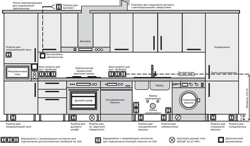 Розетка также должна выдерживать ток 16 А. Кабель можно проложить, проштробив стены от щитка до места розетки на кухне. Или же проложите кабель в небольшом коробе, укрепив его на поверхности стен саморезами. Такой вариант проводки неплохо смотрится. Штробы испортят стены, их удобно делать только во время ремонта.