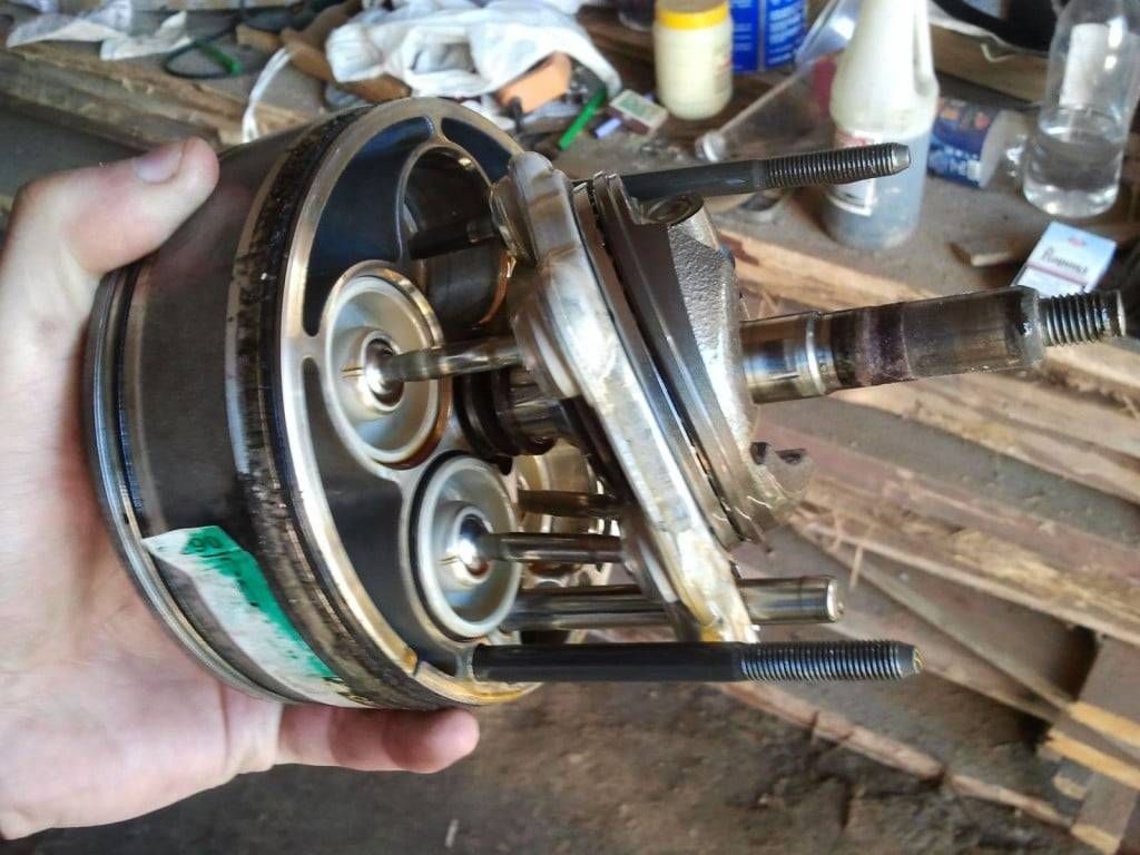 - Поршневые агрегаты, внутри которых оригинальным образом (по кругу, оппозитно и др.) может быть расположено до 10-ти поршней. Чаще всего встречается круговое расположение поршней, движением которых управляет наклонный вращающийся диск.