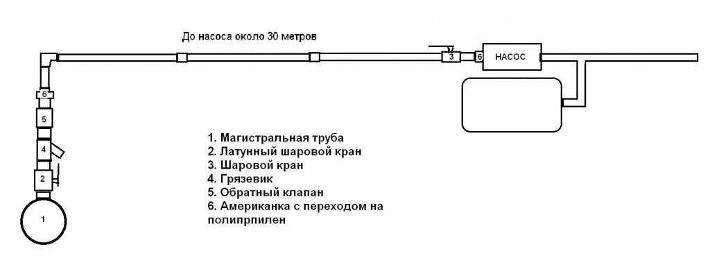 - Магистраль всасывания. Это участок между водозабором и насосом;