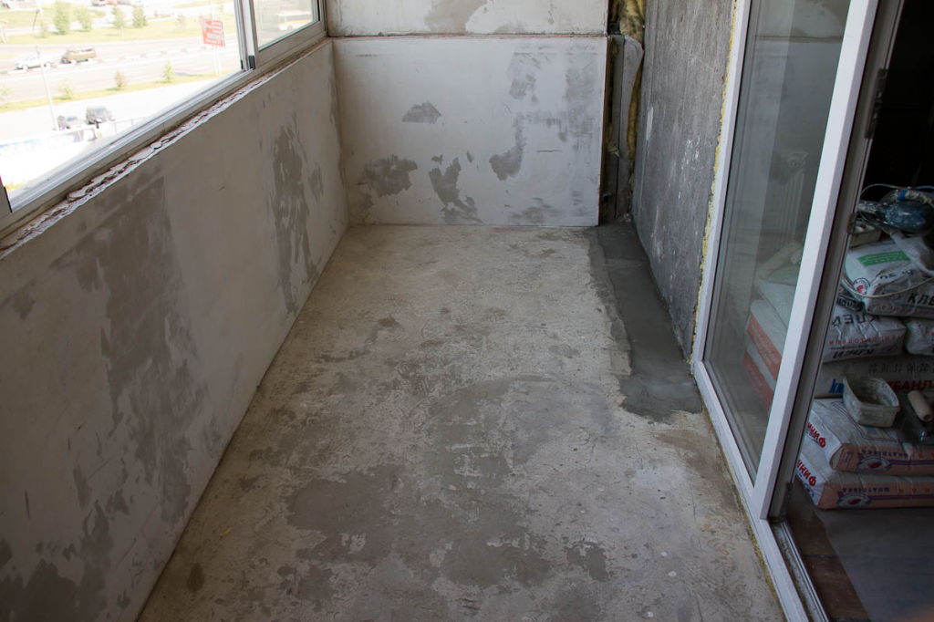 Перед началом работ по утеплению пола проводится оценка состояния балконной плиты. Она дает возможность, во-первых, определиться с видом утеплителя и рассчитать его весовую нагрузку на балкон, во-вторых, оценить качество основания пола и составить перечень работ по устранению выявленных недостатков, в-третьих, рассчитать высоту обрешетки с условием, чтобы пол на балконе был не выше напольного покрытия в смежной комнате.