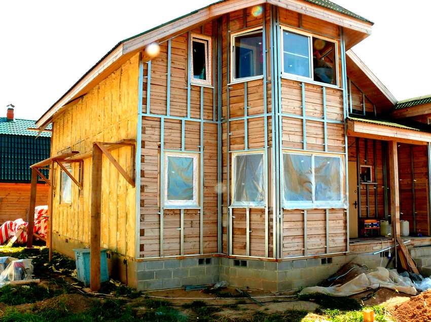 Пример обустройства вентилируемого фасада с каркасом из деревянных реек