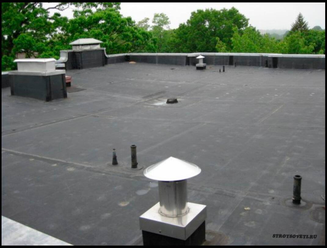 - На плоской кровле высоту трубы необходимо выбрать с учетом ее диаметра, но в пределах 50 см.