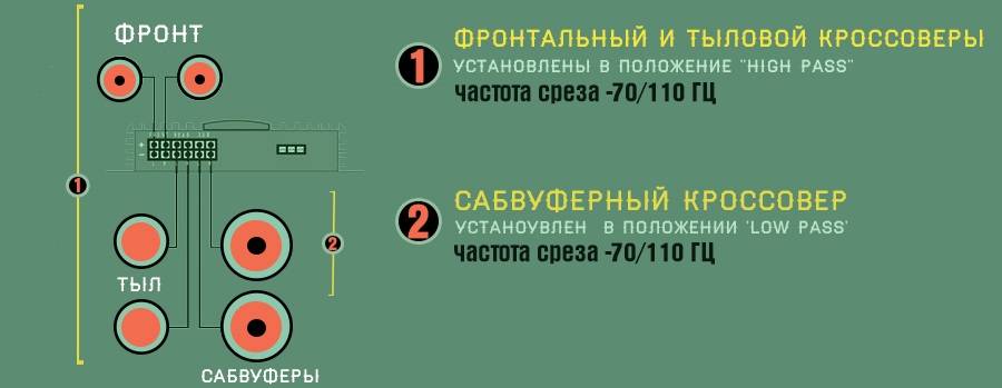 Человек способен воспринять частоту в пределах 20-20000 Гц. Такой диапазон неподвластен паре динамиков, поэтому для настройки максимально качественного звука рекомендуется установить следующие модели: высокочастотные (4-20000 Гц), среднечастотные (500-5000 Гц), сабвуферы (30-100 Гц), мидбас (80-1000 Гц).