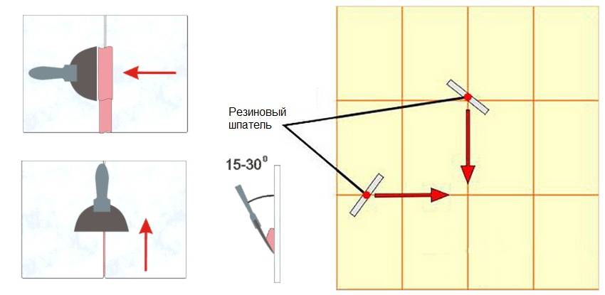 Схема движения шпателя при затирке швов