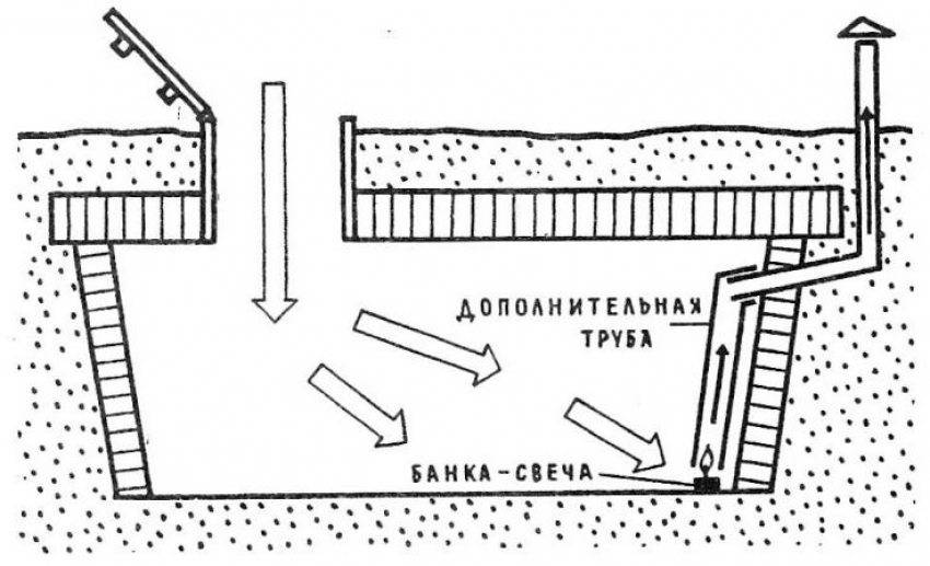 После этого внутрь заходят с горящей свечой: если она гаснет, дальше идти нельзя, т. как концентрация СО2, углекислого газа, высока и представляет угрозу жизни. Со свечой надо заходить и тогда, когда хранилище с заложенными овощами долго не посещалось.