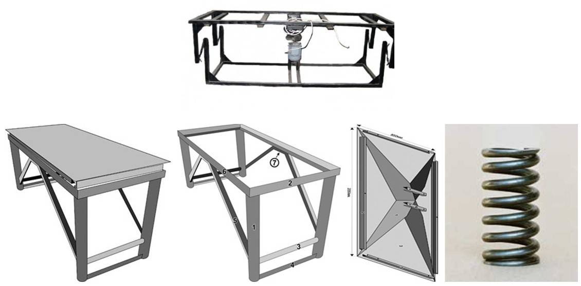Чтобы стол вибрировал, к его опорам и (или) раме привариваются металлические стаканы, в которых помещаются амортизирующие пружины. Их оптимальное количество, так же как и схема расстановки, определяется по конкретному чертежу, исходя из габаритов столешницы и мощности двигателя.