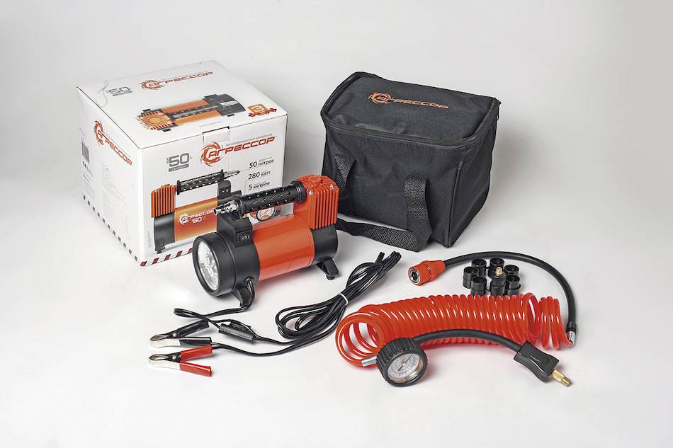 Доп. оборудование — некоторые модели автокомпрессоров могут также оснащаться дополнительным оборудованием — к примеру, фонариком для подсветки рабочей зоны в темное время суток, или ресивером, позволяющим накапливать воздух (например, для подключения к пневмоподвеске или быстрой накачки колес в шиномонтаже). Это оборудование опционально, и необходимость его наличия в конкретной модели автокомпрессора определяет сам автовладелец, исходя из своих предпочтений.