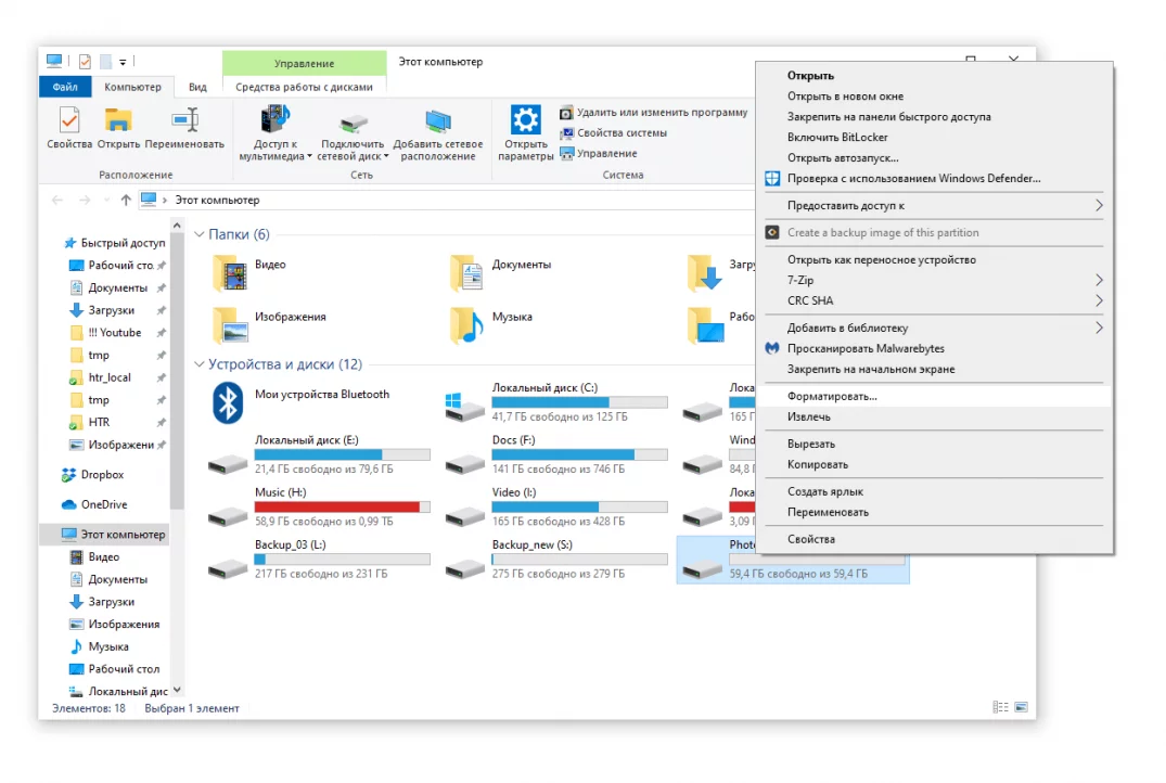 - Открыть на компьютере папку «Мой компьютер» и найти иконку съемного диска.