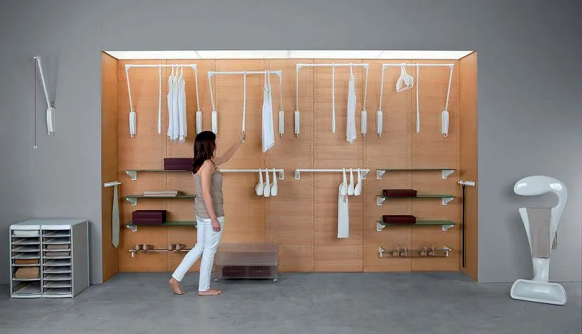 - отсек со штангой, причем нередко оборудуется этот элемент особым гардеробным лифтом, что способствует расположению одежды по разным видам;