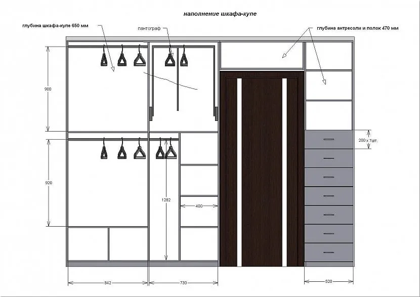 Варианты наполнения шкафов-купе в зависимости от размеров