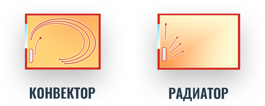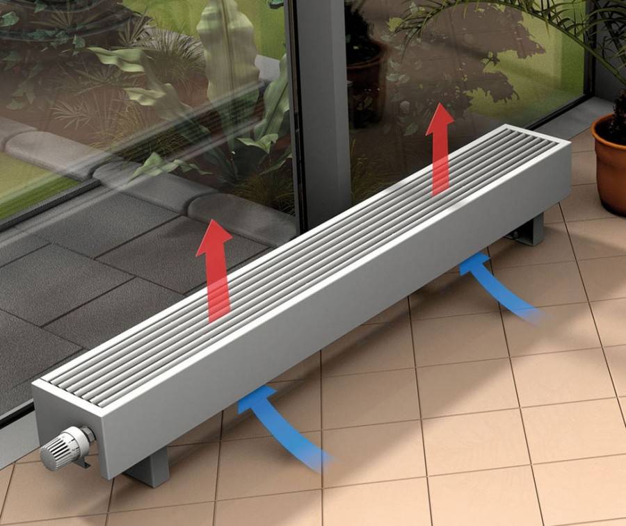 Хоть визуально конвекторы и похожи на радиаторы, то в особенности своей работы кардинально отличаются. Радиаторы по основе своей работают по принципу излучения (чугунные на 90% излучают тепло). Водяные конвекторы отопления работают по принципу конвекции – то есть забирают в себя холодные потоки воздуха и извлекают уже теплые. Все работает естественным способом.