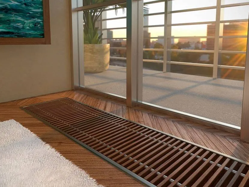 Основное преимущество конвекторов, встраиваемых в пол, — скрытый монтаж, который дает широкие возможности для смелых дизайнерских решений. Это подходящий вариант для оснащения витрин и панорамного остекления.