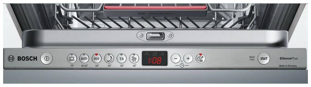 В полностью интегрированных моделях панель управления расположена в верхнем торце дверки. Каждая посудомоечная машинка выполнена в строгом, классическом дизайне, характерным отличием которого являются четкие линии и лаконичность.