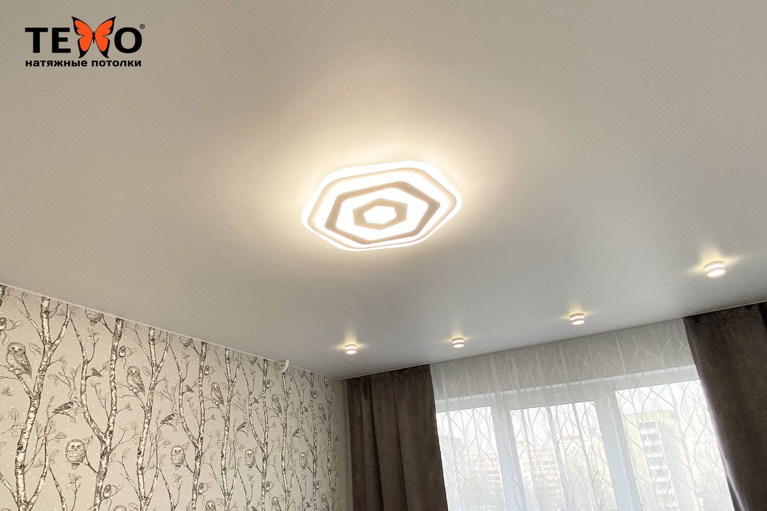 Основная сложность, с которой вам придется столкнуться – выбор люстры, которая не будет греть потолок. Из-за свойств материала, служащего основой полотна, его категорически нельзя подвергать воздействию высоких температур.