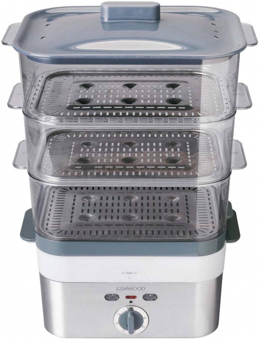 Популярная и простая в уходе модель за счет того, что все ее элементы легко снимаются и их можно мыть в посудомойке. Хорошо она подойдет для приготовления детского питания — в комплекте есть чаша для риса, в которой получаются отличные каши. Отличительной чертой устройства является возможность замены чаш местами. Примечательно, что у каждой есть собственный поддон для сбора сока. Если на разных уровнях готовятся разные продукты, то стекающий сок из верхней чаши не капает на нижележащие продукты