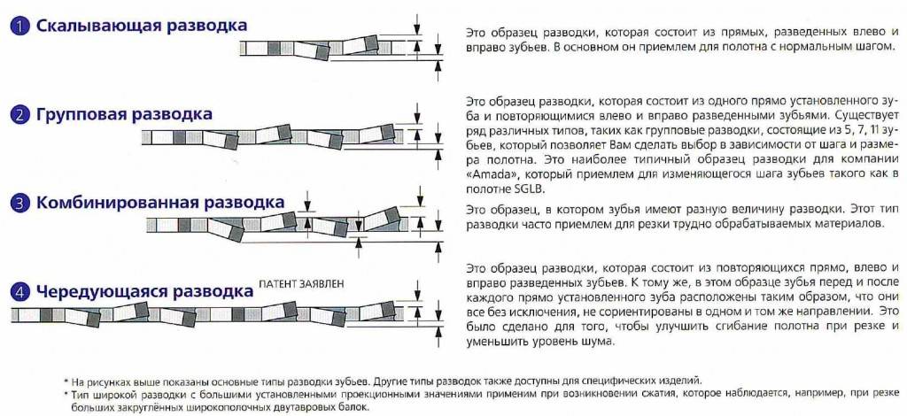 Изображение №2: схемы разводок зубцов ленточной пилы