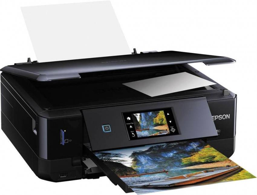 Самая компактная модель для печати фотографий и текстовых документов. Работает только как принтер, функций сканера и копира нет. Качество печати очень высокое с хорошей цветопередачей и четкостью. Принтер использует 5 чернильниц, причем кроме стандартных картриджей можно использовать и емкости XL-объема, что удешевляет печать. Есть возможность соединения с другими гаджетами по Wi-Fi. Управление интуитивно понятное – с помощью нескольких кнопок и ЖК-экрана на передней панели.