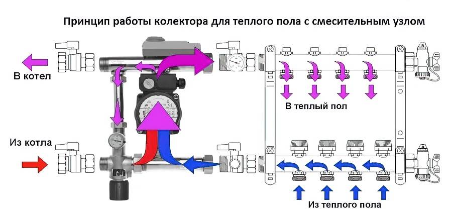 - «Гребенка» и распределительный узел. Узел, который распределяет теплоноситель по разным контурам теплого пола.