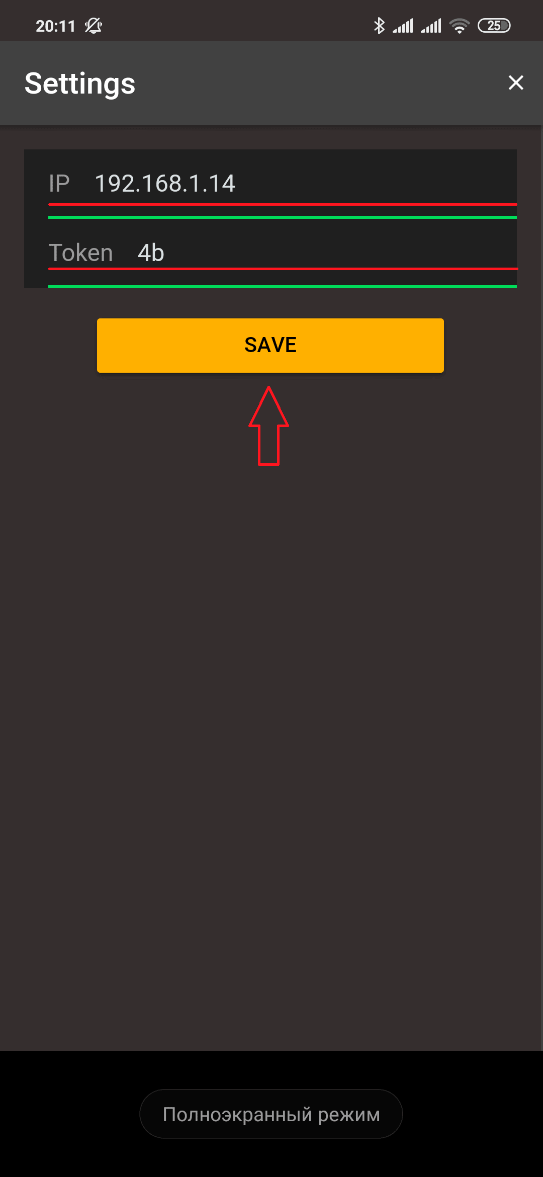 В поле IP вписываем IP-адрес нашего роутера, который запоминали на предыдущем шаге, а в поле Token вставляем Token скопированный с модифицированного приложения Mi Home и нажимаем на кнопку Save