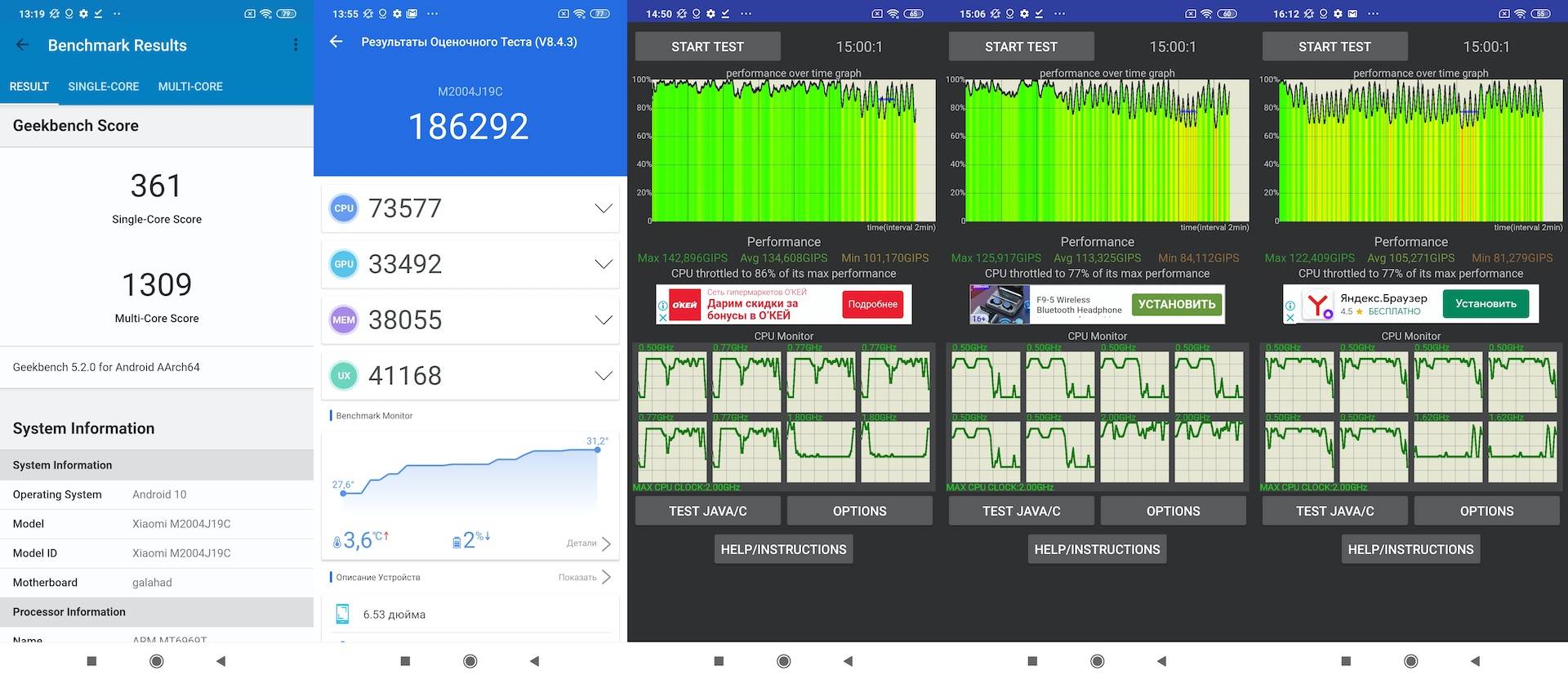 Ранее устройства с процессором MediaTek Helio G80 мне не попадались, поэтому было интересно посмотреть, как обстоит дело с производительностью. На фоне старого Redmi 8, опять же, прогресс очевиден, телефон прибавил в скорости. Хотя временами бывают подтупливания на ровном месте, спишу это на сырой софт.