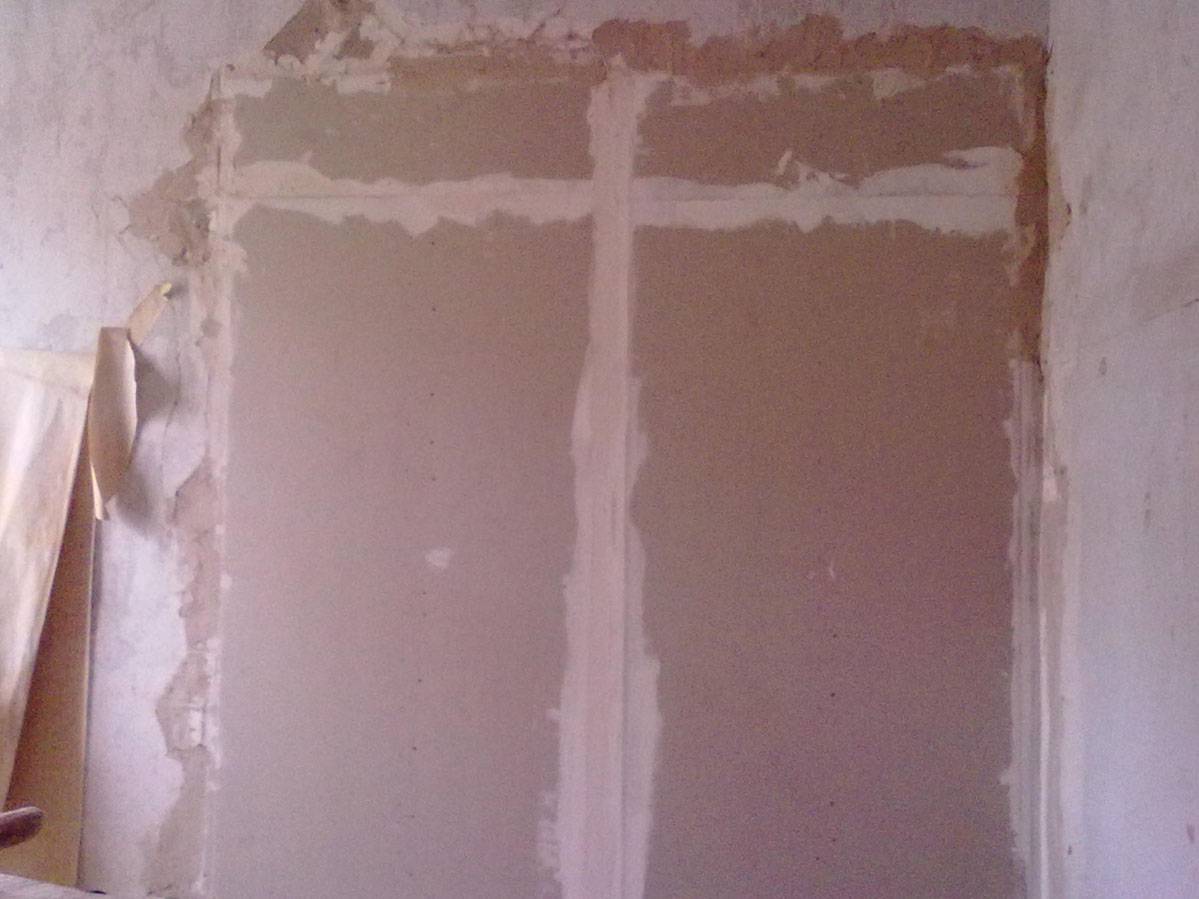 Если вы решили заложить проем кирпичом, то сложность обычно возникает при закладке верхнего ряда, когда щель меньше, чем толщина кирпича, то можно заложить ее обломками. При кладке используют густой раствор цемента. После закладки проема следует заштукатурить место кладки, приобретя готовую гипсовую штукатурку.